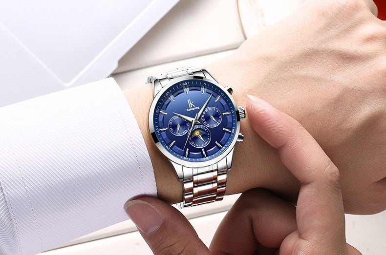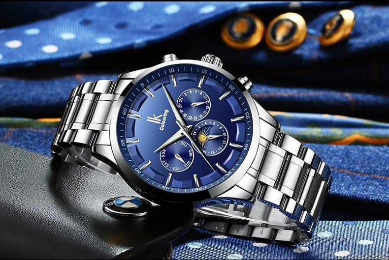 ساعة آي كي اليابانية الاتوماتيكية الفخمة للرجال , تمزج بين الأناقة الفاخرة والأداء الرفيع، مقدمة لك تجربة فريدة من نوعها في عالم الساعات الفاخرة. تصميم راقٍ وتقنيات حديثة يجتمعان لتقديم لمسة من الفخامة والدقة في كل لحظة