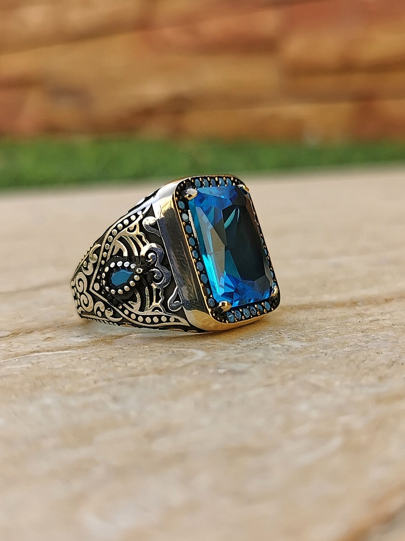 خواتم رجالية من الفضة925 بحجر العقيق الطبيعي 100%