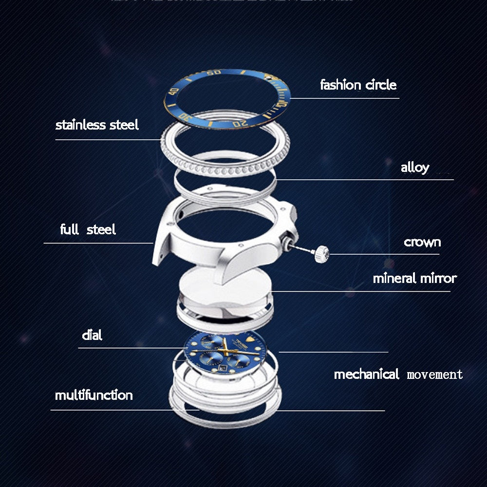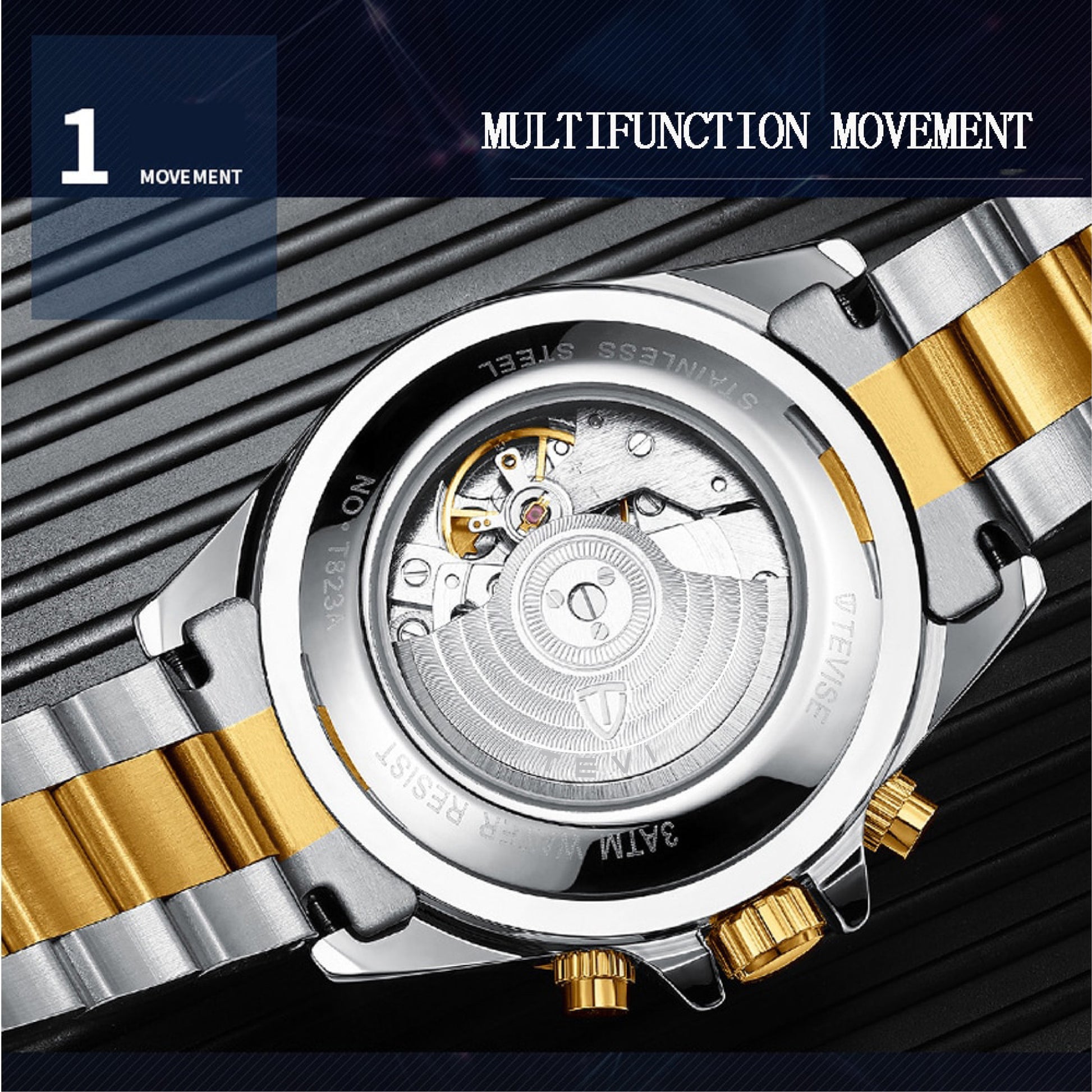 Sport Luxury Tevise Brand Waterproof Self Winding Wristwatches